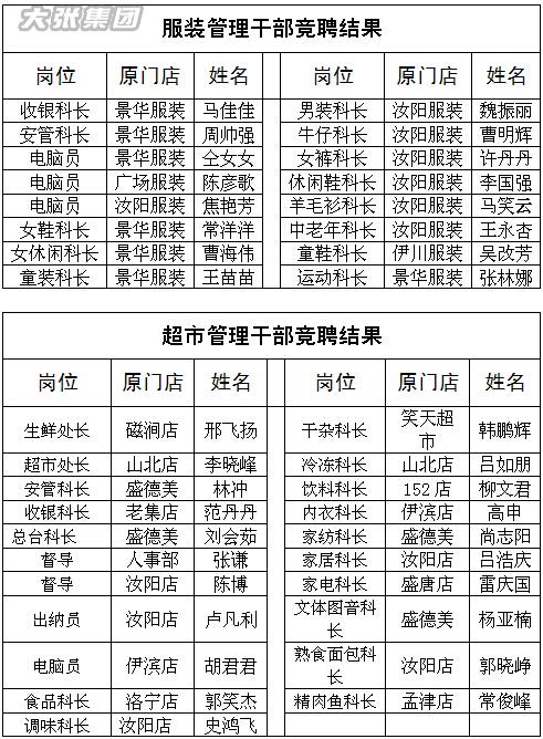 盛德美栾川店管理干部竞聘结果公示